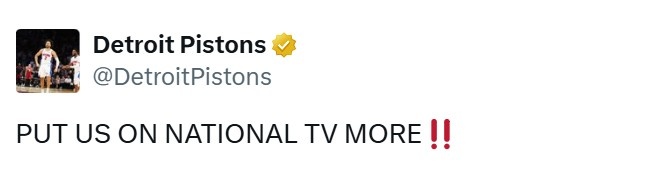 赛后,活塞官方喊话道:“多给我们排全美。”