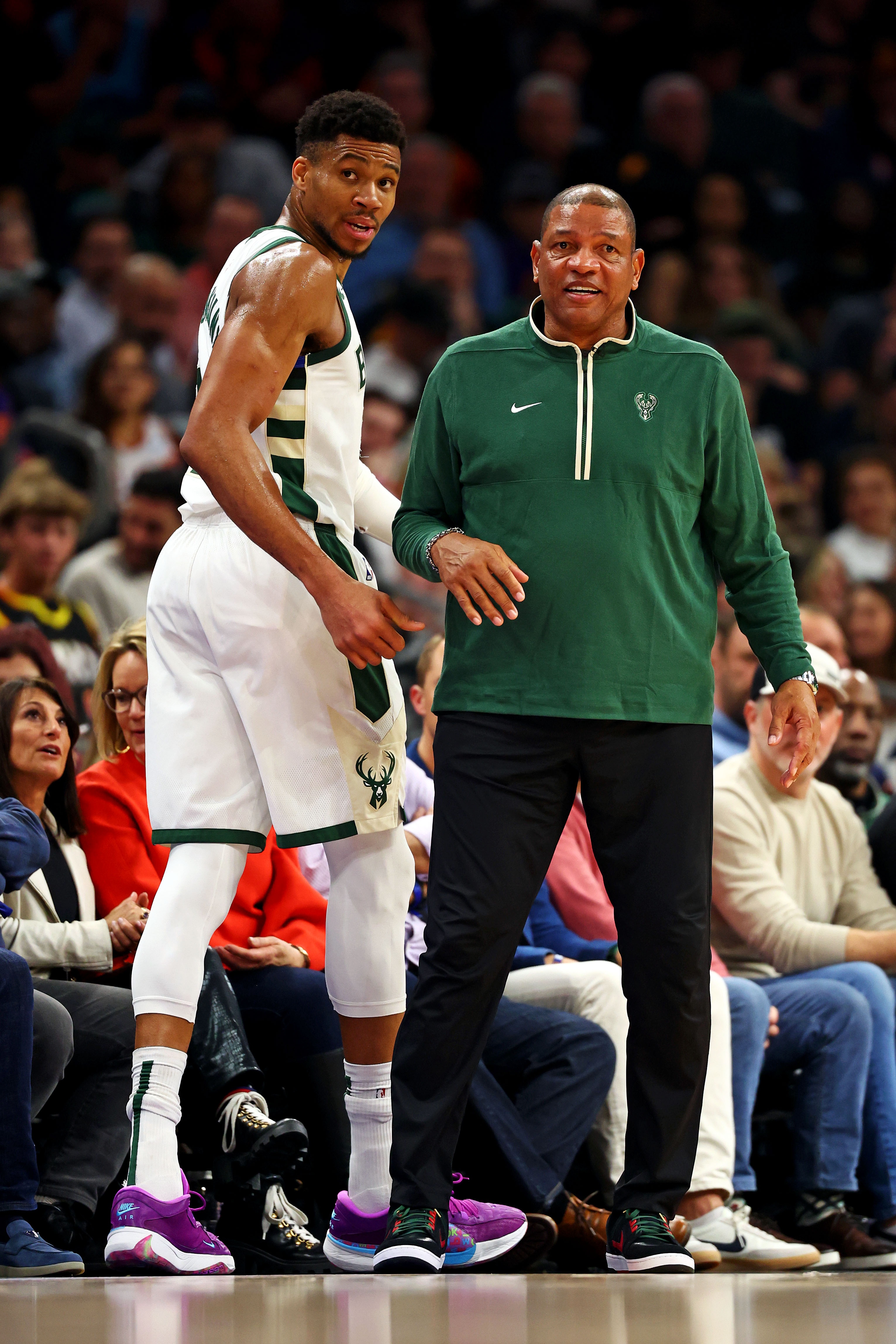 “我们在夏天确实强调了这一点,”里弗斯在上个月的一场比赛前说道,“当他在肘区接球并迈步投篮时,他的节奏非常好。我什么都没做,扬尼斯做了大量的工作。他必须接受这一点,在那里接球,从肘区发起进攻,成为那里的组织者。”