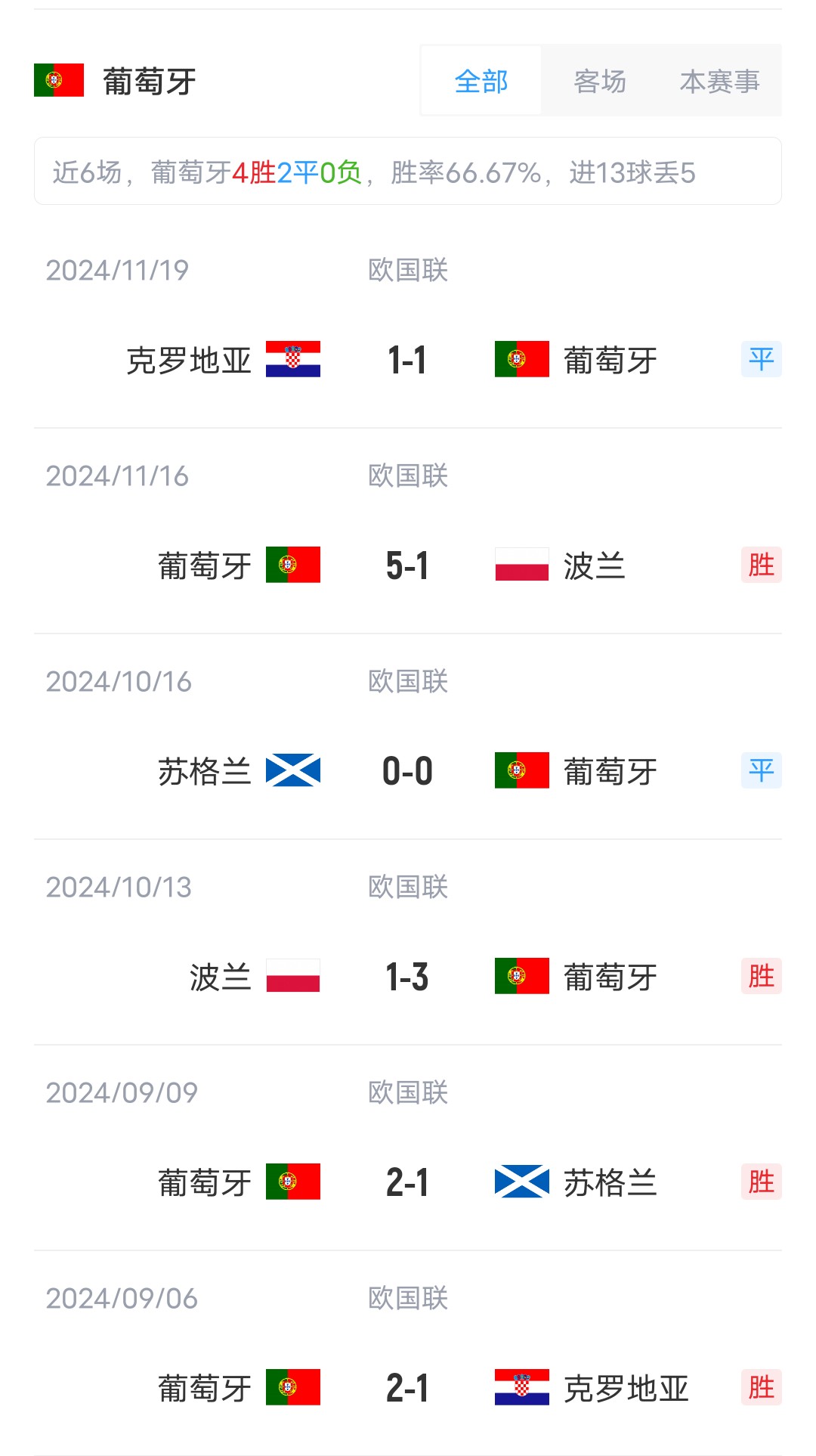 葡萄牙首发:1-科斯塔、19-门德斯、3-迪亚斯、13-维加、5-达洛特、15-若奥-内维斯、8-B费、23-维蒂尼亚、9-内托、7-C罗、17-莱奥